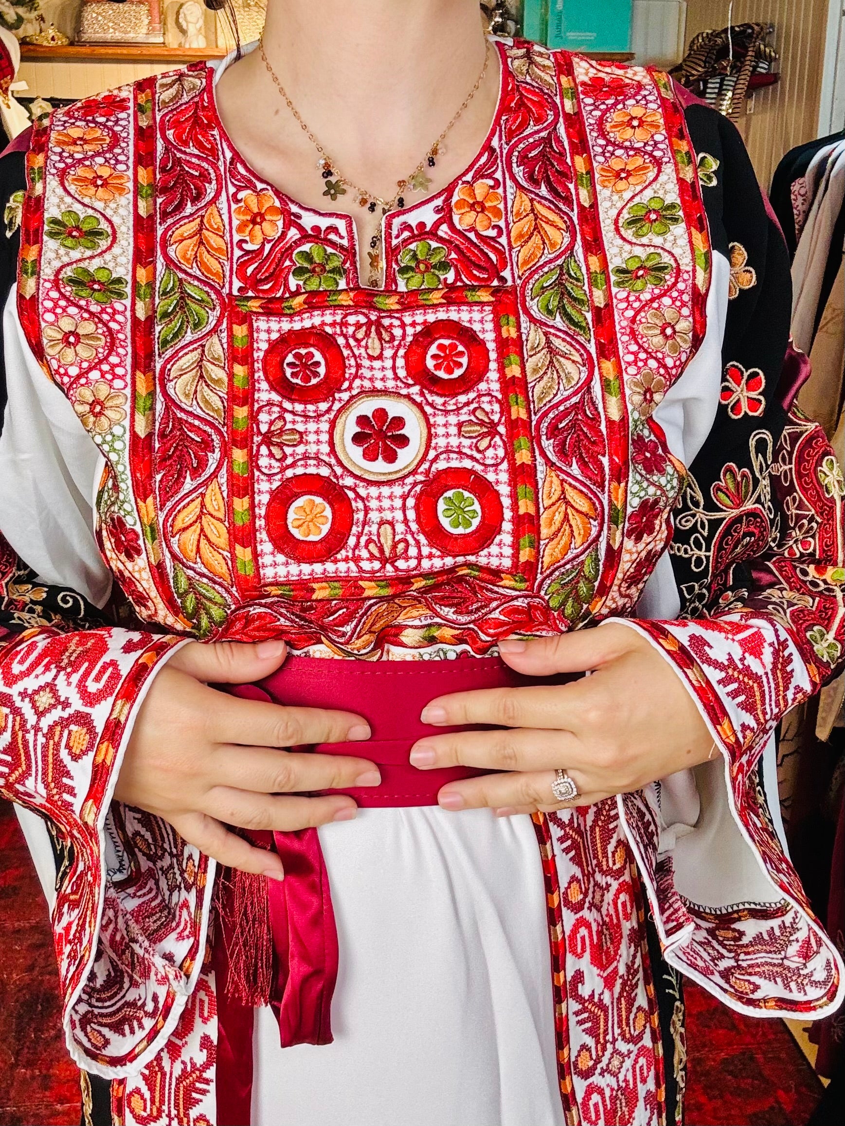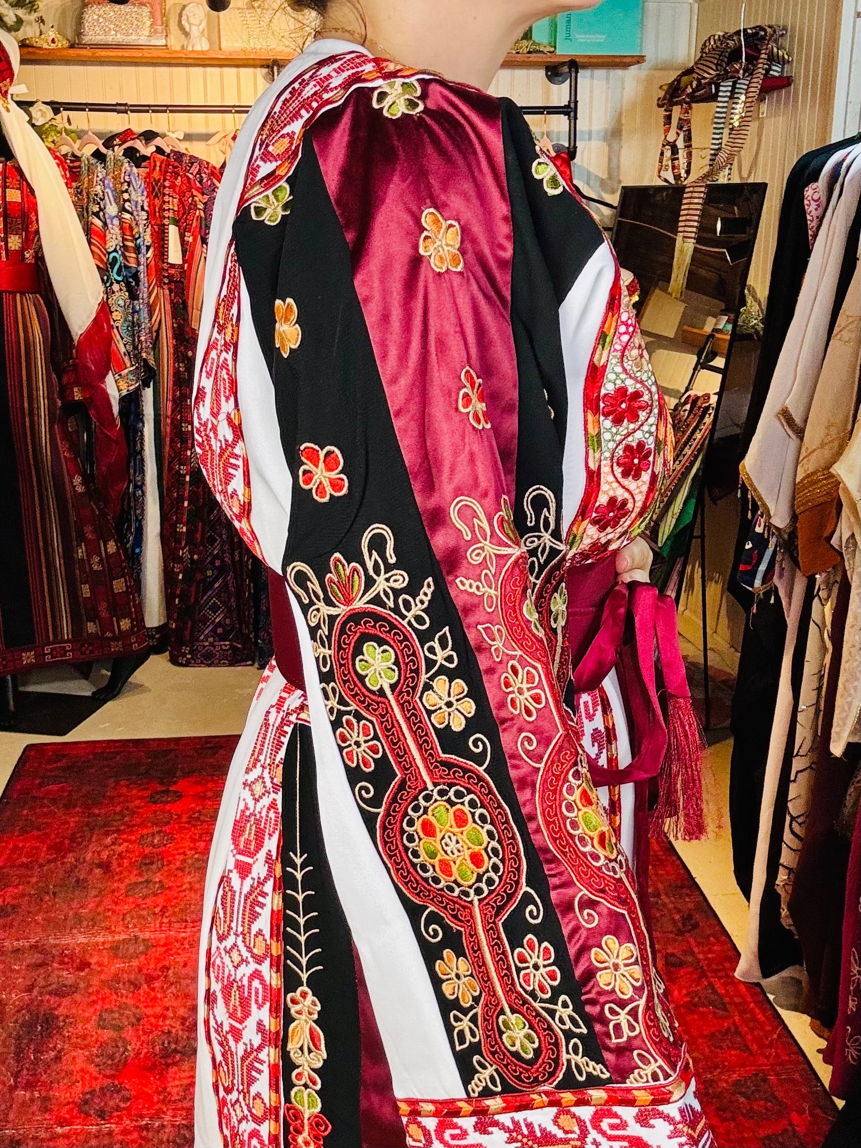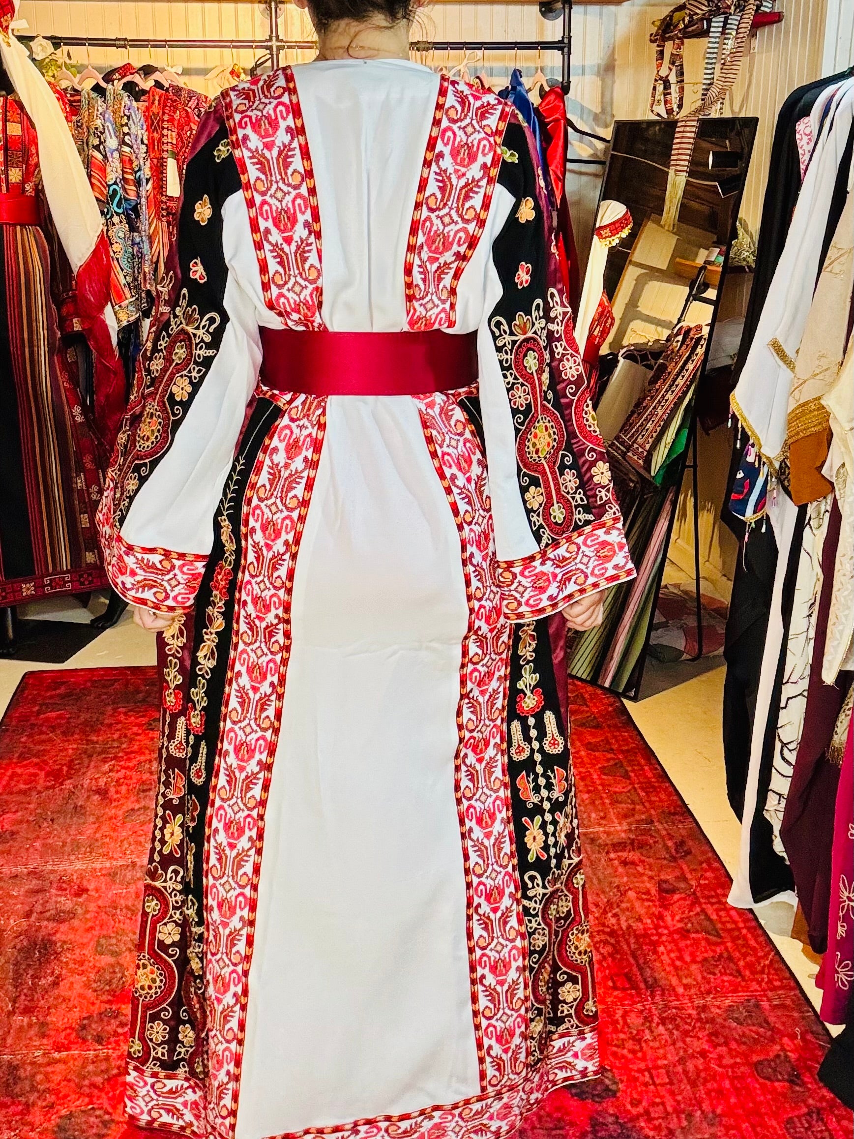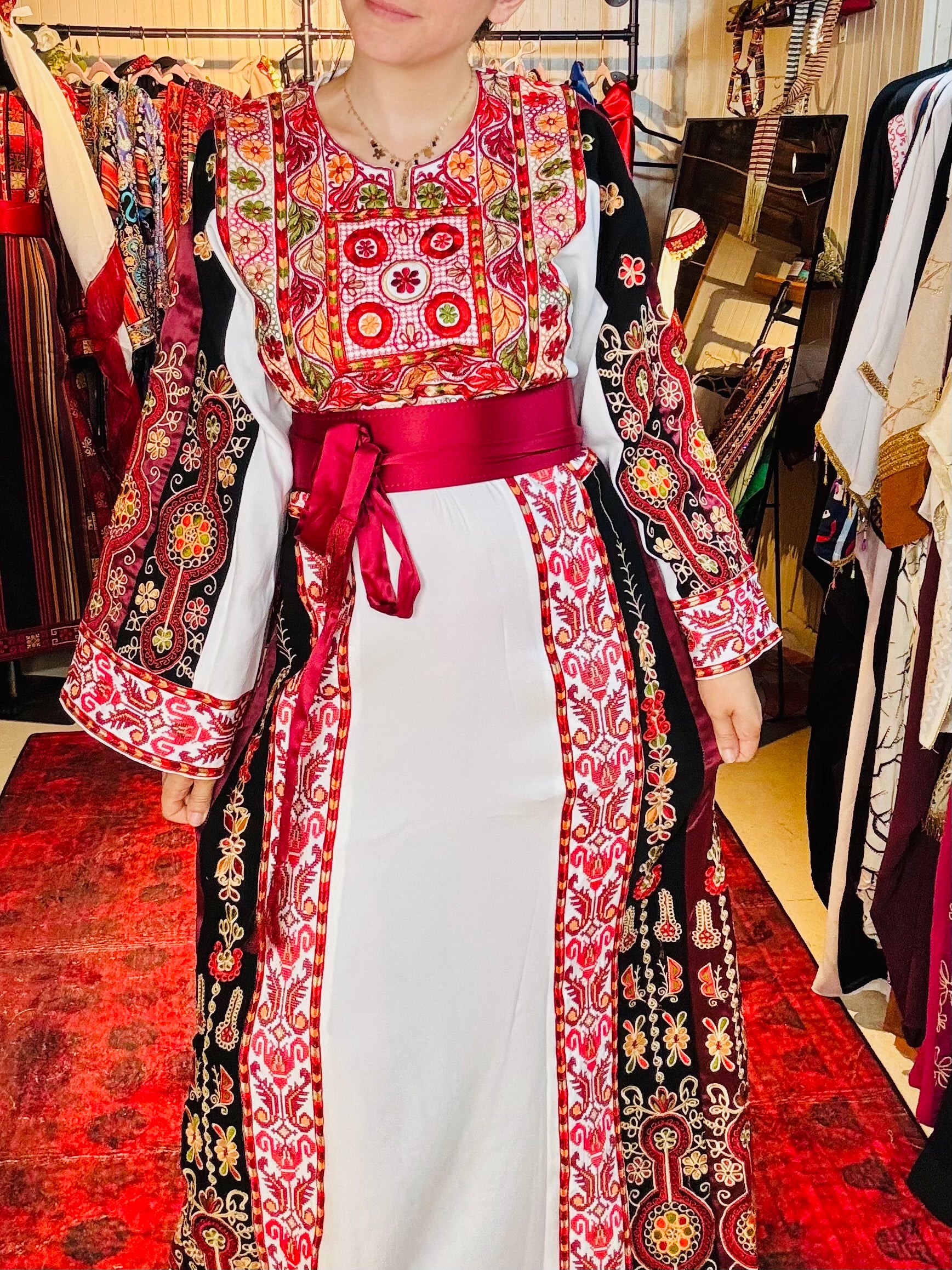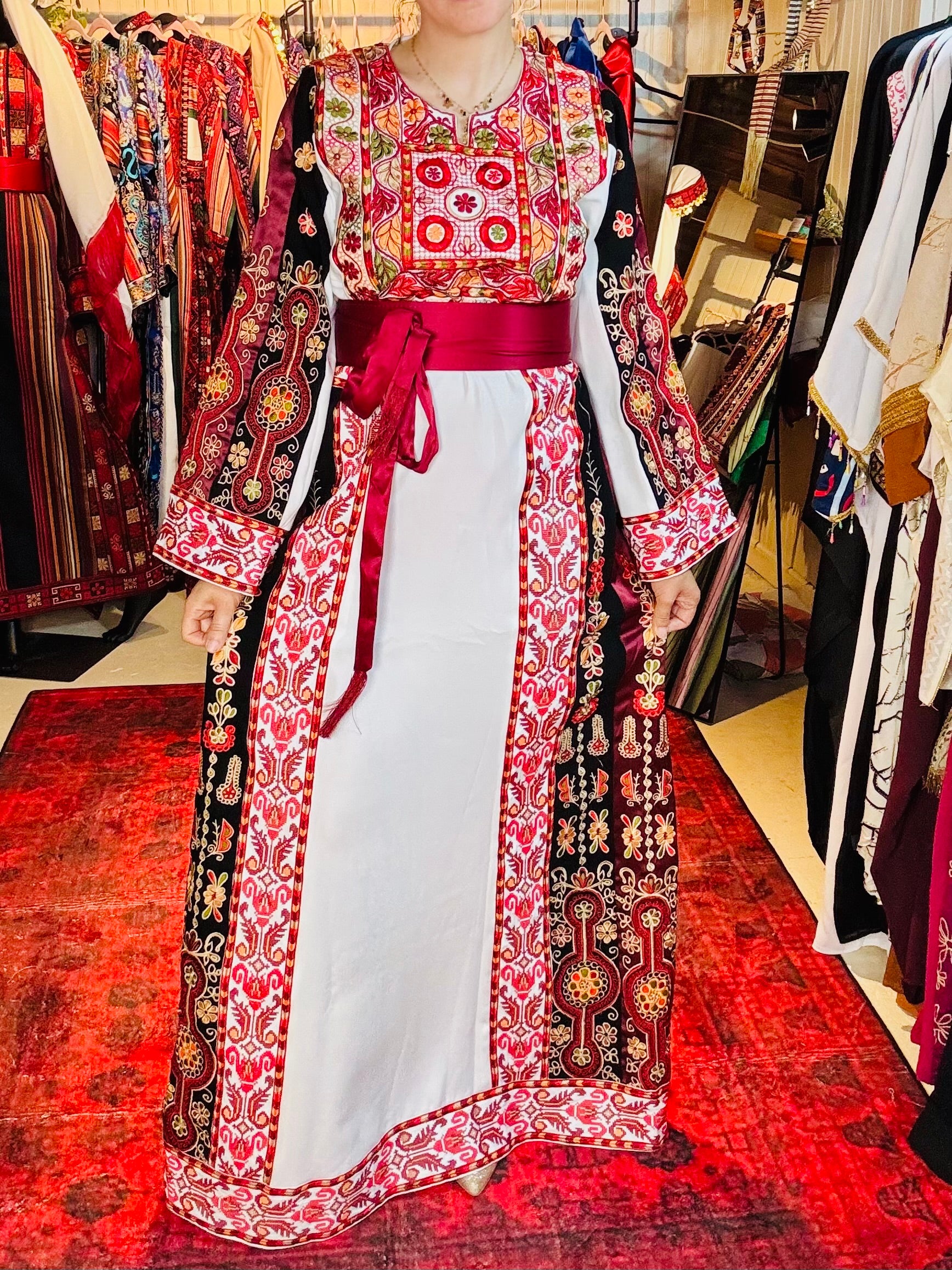 Discover the bold elegance of the Thobe AlQuds, crafted with premium-quality Palestinian embroidery that commands attention. Each stitch embodies rich cultural heritage with striking patterns designed to make a fearless statement. Elevate your style with this daring masterpiece that seamlessly combines tradition and strength.