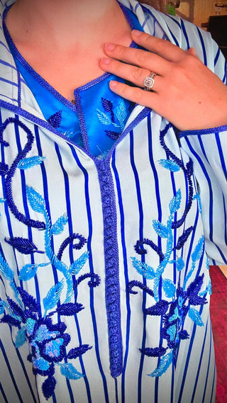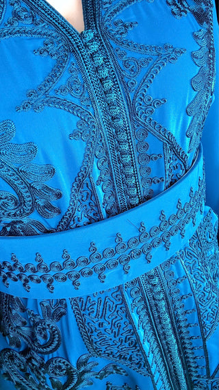 Sky Blue Luxury Brocard Moroccan Kaftan